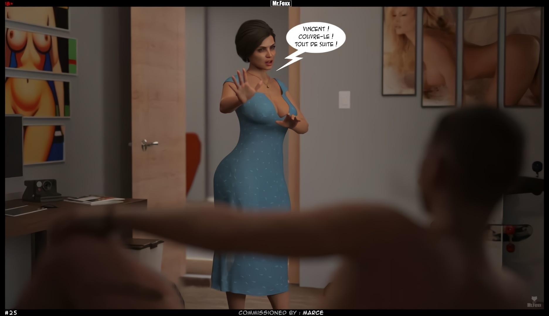 Dans un cadre marqué par une tension palpable, un personnage anonyme est surpris par des bruits étranges. En découvrant la source de ce son, il réalise, embarrassé, qu’il s’agit d’une scène intime. Pris de panique à l’idée d’être découvert, il envisage de quitter discrètement les lieux.