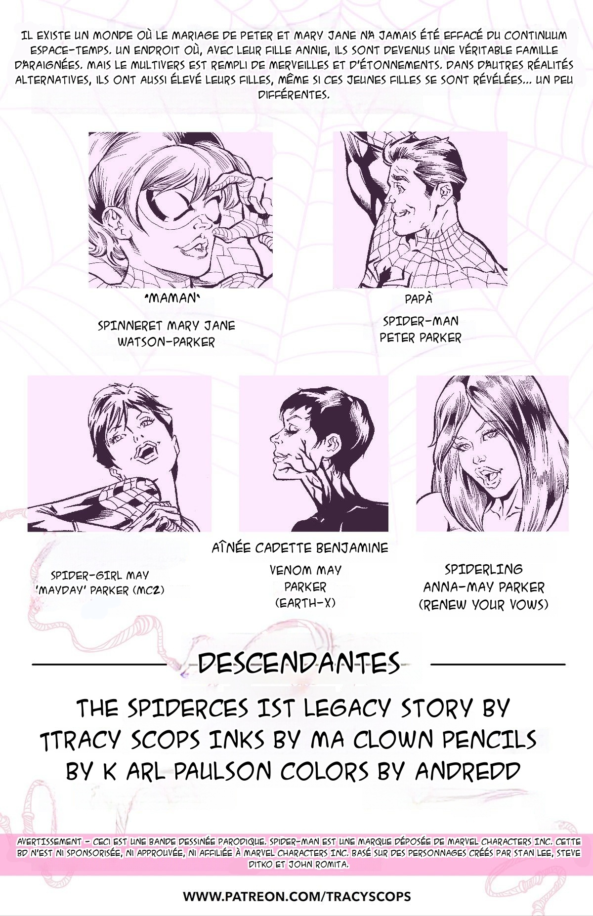 Dans un univers alternatif, le mariage de Peter Parker et Mary Jane Watson n’a jamais été effacé. Avec leur fille Annie, ils forment une famille d’araignées. Le multivers révèle des réalités où leurs enfants, bien que différents, partagent l’héritage de Spider-Man. Cette bande dessinée parodique explore ces histoires dans un style humoristique.