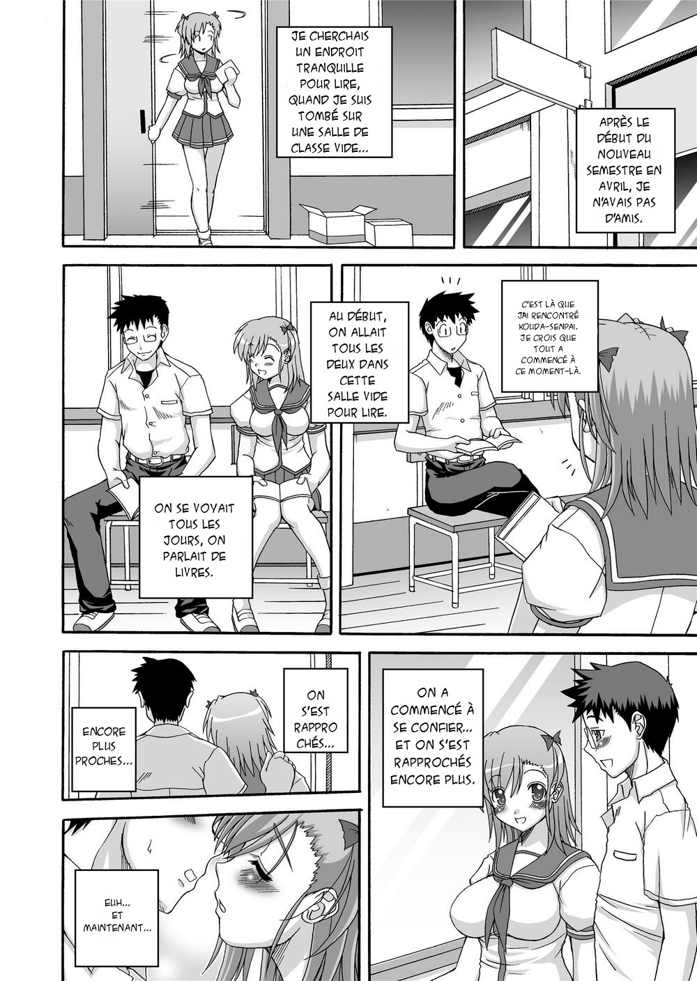 Une lycéenne découvre une salle de classe vide où elle rencontre Kouda-senpai. Partageant leur passion pour la lecture, ils se rapprochent peu à peu. Elle réalise qu’elle pense constamment à lui et retranscrit ses sentiments dans son journal intime, marquant le début de leur complicité.