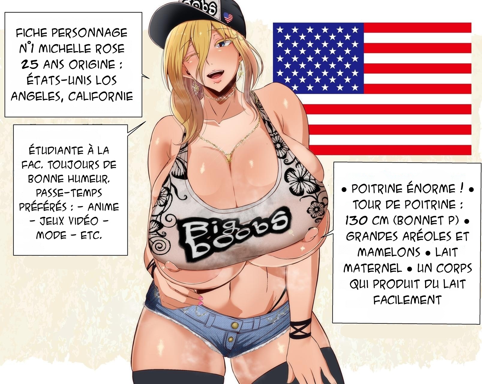 Michelle Rose, étudiante californienne de 25 ans, vit à Los Angeles. Passionnée par les animés et les jeux vidéo, elle se distingue par sa poitrine généreuse de 130 cm. Enthousiaste et sociable, Michelle rêve de découvrir le Japon et d’être accueillie par une famille locale. Sa personnalité joyeuse rayonne partout où elle va.